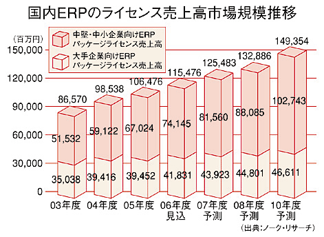 昨年末からは、2006年5月の「会社法」施行を経て、「金融商品取引法」の「実施基準」が明確になったことで、同基準に対応した「内部統制」を強化するために、「ERPの導入が最も効果的」との認識が広まった。同法の対象とはならない中堅の未上場企業でさえ、これを機にシステムを「全体最適」化し、企業内に蓄積するデータを生かして経営戦略に活用する動きが活発化している。