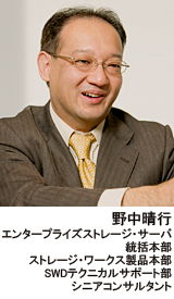 昨年11月からは価格を抑えた間接販売向けパッケージ「HP StorageWorks EVA4000 スターターキット」の販売を開始。必要最小限のストレージ構成をバンドルするなどして、仮想化という高度な技術を導入しやすくする一方で、「パートナー企業がより扱いやすくする取り組み」(野中晴行・エンタープライズストレージ・サーバ統括本部ストレージ・ワークス製品本部SWDテクニカルサポート部シニアコンサルタント)にも力を入れる。