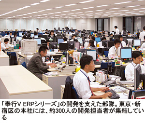 オービックビジネスコンサルタント(OBC、和田成史社長)は、年商300億円以上の企業での利用を視野に入れたERP(統合基幹業務システム)「奉行V(ぶぎょうブイ)ERPシリーズ」を10月に発売する。マイクロソフトの次世代開発環境「C#」を活用した64ビットネイティブ製品だ。将来的には、既存の下位製品を同じ開発ベースに統一する。中小企業向けにはSaaS(Software as a Service)型でも提供を検討している。「奉行シリーズ」を活用して親会社から子会社まで同一データベースで一貫した管理が可能になる。企業グループ全体での内部統制強化の要求が高まるなかで、同社製品がERP市場の急先鋒として浮上しそうだ。