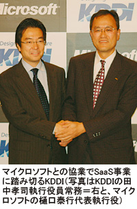 しかも、KDDIでは「SaaSでアプリケーション市場に参入したい。法人ユーザーに対して、回線からアプリケーションまでを網羅したワンストップソリューションの提供で新しい成長基盤を整える」(田中執行役員常務)と構想している。ITベンダーのビジネスモデルを視野に入れたアライアンスを組まなければ、新しい事業領域に踏み込んでもアプリケーションの充実が果たせないといった“手痛いシッペ返し”を食う恐れもある。