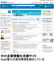 政府が運営する無料体験サイトも 韓国におけるSaaSは、いわゆる中小企業よりもさらに規模の小さい企業の情報化という側面から政府主導で広がっているようにみえる。中小企業労働組合中央会のデータによると、2005年末時点での韓国の事業体数は常時勤務者数300人以上の大手企業が4160社、300人未満の中小企業が300万1893社と全体の99.9%が中小企業と区分されている。企業の情報化では、従業員250人以上の企業すべてが全社員にパソコンを支給している。しかし、初期費用の負担や投資対比効果が疑問であるとして、インターネットとeメールといった基礎的な用途以外での情報化については消極的な姿勢をみせる企業が多いのが実情だ。今後、SaaSを利用してより多くのソフトウェアを少ない費用で利用できるようになれば、少額投資で中小企業の情報化が進められることになる。