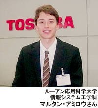 PROFILE:マルタン・アミロウさん。1984年12月、フランス生まれ。04年6月、フランスの技術短期大学情報学科卒業。パリ第7大学の日本研究学科を経て、05年9月、ルーアン応用科学大学情報システム工学科に編入。08年3月、ルーアン応用科学大学と提携関係にある茨城工業高等専門学校を通じて東芝ソリューションで半年間の企業研修が実現する。●日本文化に深い興味を持つ