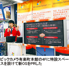 「Windows Server 2008」の発売週には、「the Microsoft Conference 2008」の開催だけでなく、家電量販店でもPR施策を展開していた。新OSのメリットを紹介するイベントを、東京都内の有力店舗、ビックカメラ有楽町店本館とヨドバシカメラ マルチメディアAkiba店でも同様のイベントを開催した。