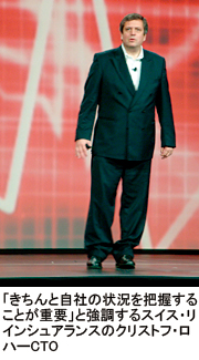「当社がビジネスを革新しなくても他社は行うだろう。すでに進めている競合もあるのではないか」。スイス・リインシュアランスのクリストフ・ロハーCTOは、そう危機感を募らせる。
