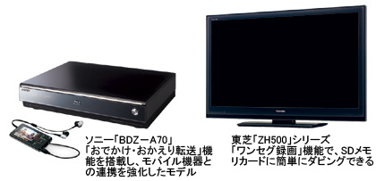 また、録画した番組を携帯電話や携帯オーディオに転送して持ち運ぶ使い方をしていたユーザーにとっても利便性が向上する。例えば、番組をBDなどに保存した後でも、まだ8回まで転送できるので安心だ。ソニーは、PSPやウォークマンへの転送を簡単にしたレコーダーをすでに発表しており、東芝もSDメモリカードに番組をコピーする機能を搭載した液晶テレビを開発している。どちらも「ダビング10」を見越してこのような機能を用意していたという。こうしたモバイル機器との連携も、「ダビング10」開始にともなって広がっていきそうだ。(津江昭宏)