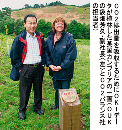 プリンタ会社のOKIデータ(杉本晴重・社長CEO)は、年間のCO2排出量を英国スコットランドのアセンブリ(仕向け先の仕様変更)拠点を中心に欧州全体で42%削減した。削減後に残ったCO2を吸収する「カーボンオフセット」として植林活動も実施した。同様の活動は東芝なども展開している。OKIデータのワールドワイドでの売上高が約50%を占める欧州地域は、環境対策の先進地域。こうした活動を実施することで域内にブランド認知を高めるなどの狙いがありそうだ。現在、国内や中国、タイなどに点在する生産拠点でもCO2削減活動を積極化。同社は、継続して世界で環境負荷低減を進める。(谷畑良胤・特派員)