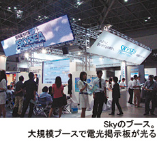 そんななか、入場してすぐ、前面に電光掲示板を使った比較的大規模なブースがあった。場内でひときわ目立つこのブースはSky(大浦淳司社長)のもの。
