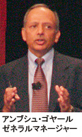 イベントでは、オンデマンド環境でのインフォメーション・マネジメントをアピール。情報管理に関する新しい技術として「Innovate」、効率性の向上として「Optimize」、競争力の向上に向けた優れた意思決定をするための情報活用として「Perform」という3種類のコンセプトを掲げた。コンサルティングやサービス、1500種類以上あるソフトウェア製品の組み合わせを追求している。インフォメーション・マネジメント・ソフトウェア部門のゼネラル・マネージャー、アンブシュ・ゴヤール氏は、「ばらばらのデータを統合し、いかにビジネスを最適化できるかが重要」と説明。また、情報を一段と効果的に活用するための「インフォメーション・アジェンダ」と呼ぶシナリオを発表し、企業のグローバル化や買収統合が進んでいるなかで、ユーザー企業の全社横断的な戦略確立を支援する方針だ。