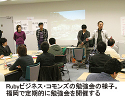県より早くRubyの可能性に着目したベンダーがいる。東京のSIerのイーシー・ワンは、福岡に開発拠点を開設するに当たり、人材をどう確保するかで悩んでいた。そこで、「へたに求人広告を出すより、Rubyの勉強会を開催すれば知名度が上がる」(イーシー・ワンの最首英裕社長)と思い至る。同社はJavaやRubyを活用したソフト開発を得意としていることから、07年7月にRubyビジネス・コモンズを開設。定期的に勉強会を開催したところ、福岡を中心に参加者が急増。コモンズの参加者は直近で約620人で、うち500人近くが地元から参加する状況だ。