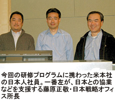 「ITベンチャー支援プログラム」は、この「企業市民活動」の一環として展開している制度だ。マイクロソフトと各自治体が協力して、今後の活躍が期待できそうな若いIT企業を地元から選び出し、1年間限定でバックアップする。今年は4県から7社を選定(下表参照)。開発と販売の両面でベンチャーを助けるメニューを揃えている。この制度の一つに、米本社での研修がある。ワシントン州レドモンド市内にある本社に招待し、最新のソリューションや未発表技術を本社担当者から説明する。ITベンチャーの今後のビジネス展開に役立ててもらうためだ。今年はITベンチャー支援プログラムの選定企業と、自治体向け支援制度「インキュベーションプログラム」でサポートする自治体の担当者など、計15人が参加した。