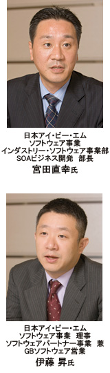 日本IBMには、アプリケーション・サーバーの「WebSphere」など、付加価値の高いSOAシステムを構築するうえで有用なミドルウェアがあり、本社のある米国のSOA導入事例などを基に技術革新が進む。これらIBM製品群をシステム開発に利用するベンダーに限らず、SOAビジネスで高い収益力を上げた国内SIerは限られている。 このため、同組織では、日本IBMがIBMのSOA戦略を基にした製品群の技術や設計手法、米国の先進実績約8000件などの事例を参加BPに情報提供するとともに、これらを参考にして「会員参加型」のリアル・サイバー両面で、具体的な導入シーンに結び付けるための議論を定期的に行う。つまりは、「売れるSOAビジネス」を両社が平等な立場で協力してつくり上げるようとしているわけだ。