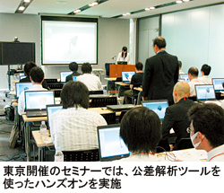 同セミナーではこのほか、地域で活躍するCADサポート員を講師に、「SolidWorks」を実務レベルで使うようにするため、実機を使ったハンズオンも行った。「参加者は超大手メーカーから個人事務所レベルの人まで幅広く参加した」(佐々木上級課長)と、関心の高さを実感している。同社では7月14日、東京に引き続き大阪地区で同様のセミナーを開催する。