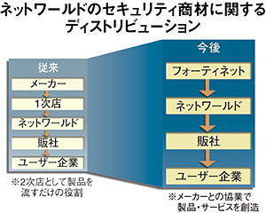 ネットワールドは、シスコシステムズをはじめジュニパーネットワークス、ソニックウォールなど、多くのネットワークセキュリティ製品を扱っている。フォーティネットの製品も、以前から扱っている。ただ、どの製品もメーカーの2次店というポジションでのディストリビューションだった。