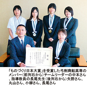 この賞は経済産業省、文部科学省、厚生労働省および国土交通省の4省庁が、有識者で構成される第三者委員会の審査等を踏まえて受賞者を選定するもので、文科省によって選定された4件(7名1団体)のなかに、弓削商船高専の名前があった。