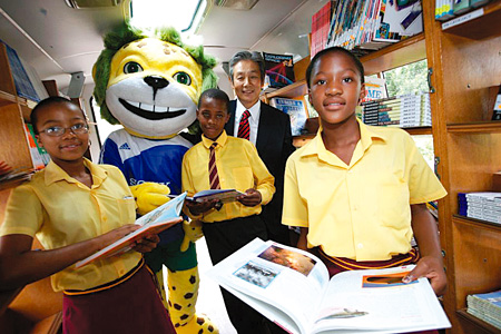 08年に実施された「南アフリカ移動図書館車プロジェクト」でのひとコマ