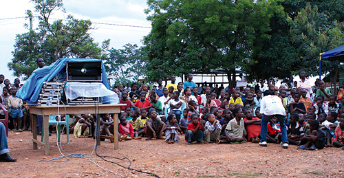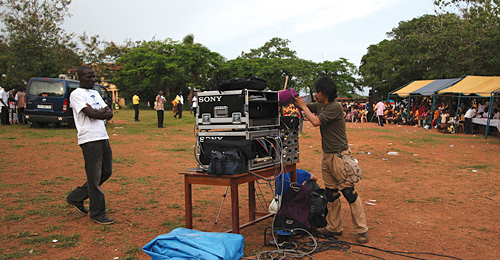 ガーナでは「HAPEプロジェクト」に協力。会場に大型映像装置を設置し、ワールドカップの映像などを無料で上映した