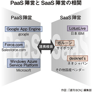 「LotusLive」は、セールスフォースやLinkedln、Skypeなどと連携し、「ジョイントする関係」(日本IBMの三浦美穂・ソフトウェア事業ロータス事業部事業部長)であるように、ベンダー同士は敵対から共存する関係に移りつつある。プラットフォームを握る外資系大手は、パートナー企業の得意分野やノウハウを十二分に活用し、シェア拡大をもくろむ一方、パートナー企業はスケールメリットを享受し、エンタープライズ領域への本格的な参入に乗り出している。
