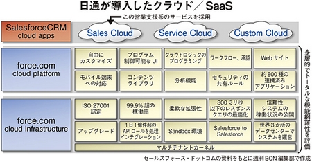 日本通運は、クラウド/SaaS型の顧客管理システム「Salesforce CRM」を導入する。営業担当者を中心に国内外約6000人が使うもので、国内物流業界では最大規模。2010年3月までに全員分を稼働させる。プロジェクトを受注したキヤノンマーケティングジャパン(キヤノンMJ)では、この実績をテコに同社のクラウド/SaaS型ビジネスに弾みをつける。日通はSalesforceに切り替えることにより同分野で年間約20%のシステム運用コストを削減するとともに、営業力向上を図る。