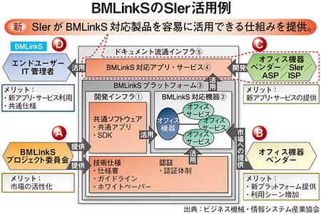 JBMIAの委員であるキヤノンの中村英俊主幹は「大規模導入のように1社で囲い込みたい営業領域ではなく、SIerのようにマルチベンダー対応する販社に使ってもらうことを訴えたい」と、使う対象者の棲み分けが必要と語る。恐らく、メーカー側が計画的にBMLinkSを広める努力をすれば、これらのツールを使うSIerは確実に増えるだろうし、プリンタ販売も伸びる。JBMIAに加盟するメーカー側は重い腰をあげ、自らBMLinkSの普及を積極化すべきと考える。(谷畑良胤)