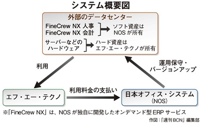 オムロン子会社で制御機器専門商社のエフ・エー・テクノ(FAテクノ、石田良信社長)は、基幹業務システムの一部をオンデマンド型サービスに切り替えた。サービスを提供するのはSIerの日本オフィス・システム(NOS、水谷正裕社長)。FAテクノが長年使っていたパッケージソフト型の財務会計と人事システムを、NOSが独自に開発したオンデマンド型ERPサービス「FineCrew NX(ファインクルーエヌエックス)」シリーズへと移行した。ここ数年、急速に広まるクラウド/SaaS方式と同様、バージョンアップの負担を解消。月額の定額料金で常に最新バージョンのソフトを利用できるようにした。