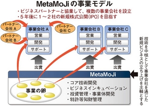 社長に浮川和宣氏、専務に初子氏を据えるMetaMoJiの“ツートップ”の経営体制は、30年前のジャストシステムの創業時と同じだ。社名には、「文字(モジ)をベースに築かれてきた人々の思考やコミュニケーションを進化(メタ)させる」との意味を込めた。メタデータやオントロジー技術を駆使し、コンピュータによる次世代の言語処理の確立を目指すものとみられる。
