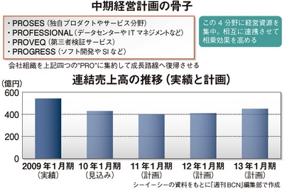 こうした反省を踏まえて、10年度(11年1月期)はITサービス分野を重点的に強化。底堅い需要があるDCビジネス単体の今期売上高は約50億円の見込みだが、向こう3年間で100億円に倍増させる。クラウド/SaaS型の商材の拡充や、DCをベースとしたクラウド型のSIを組み合わせれば、ビジネス規模はさらに増えることが期待される。