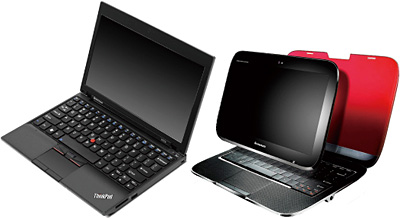 シンクパッドX100e(左)とアイデアパッド U1 ハイブリッド ノートブック。U1の日本での発売は未定