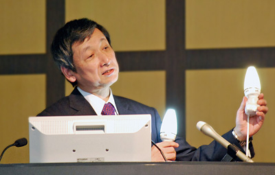 異色の商品としてLED電球に着目しており、「環境対策や法規制でLEDに対する関心はかなり高まるはず。昨年度はまだ12億円程度の規模だが、中長期的な成長を見込んでいる」(同)。東京・新宿にLED電球を活用した看板として世界最大規模という電子看板を設置したほか、2月3~5日に開催した自社イベントでは、来場者全員にLED電球をプレゼントするなど、熱が入っている。