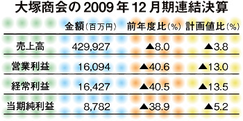 大塚商会(大塚裕司社長)の2009年度(09年12月期)連結決算は2年連続の減収減益、期首に立てた計画値にも達しない結果に終わった。大塚社長は決算会見で「厳しい環境でも増収増益は企業にとっての義務」と力強く話し、今年度は増収増益計画を立案。営業利益率7%以上(09年度は3.7%)を目指す姿勢を示した。大塚社長は、自らが「不透明感は依然続く」とみる今年度、何をもって成長路線に復帰しようと考えているのか。決算会見で表明された言葉と同社の資料からその方向性を探る。