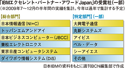 今回のパートナー・アワードでは、経済危機後の市場の変化に適応できたパートナーが上位に名前を連ねている。見方を変えれば、ライバルメーカーに先駆けて、大きくビジネスモデルを変えようとしている日本IBMを巧みに活用しているSIerでもある。古長部長は、「昨年度下期からの施策が、実際に数字に結びつきつつある」と、今年度(2010年1~12月期)も、引き続き、顧客の課題解決に重点を置いたパートナー施策を継続する方針を示している。(安藤章司)