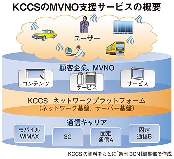 KCCSは、MVNOの構築・運用支援を今年6月をめどに始める。同社は2002年にMVNO事業に参入。このノウハウを顧客企業に提供するものだ。ネットワークや認証システム、閉域網の構築、サービスの一部を代行するなどのメニューを揃える。移動体だけでなく、固定回線もカバーする。同社では、この支援サービスが、プライベート・クラウド構築ビジネスにとって、他社との重要な差異化要素になるとみている。