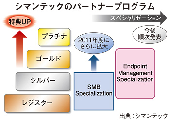 米シマンテック(エンリケ・セーラムCEO)は、自社のパートナープログラムを大幅に強化する。従来の取引高中心のパートナー制度から専門特化型のプログラムに置き換えていくという。シングルポイント製品のライセンス再販という従来型のビジネスから脱し、複雑化する顧客の課題を解決するため、ソリューションとして提供していく必要性が高まっており、リセラーのスキル向上が重要視されている。
