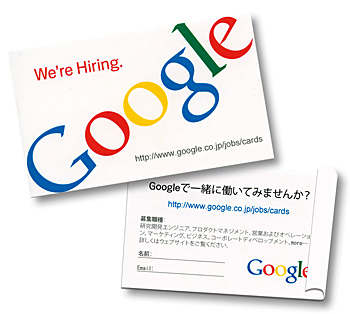 「We're Hiring.」と記された人材募集を呼び掛ける名刺大のカード。担当者が持ち歩き、IT関係者を中心に配られている