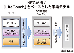 収益は、「LifeTouch」を担ぐベンダーがサービスの提供で確保する。NECがサービスで回収した売り上げをシェアするほか、SaaSのプラットフォーム提供などで収益を得ることになる。「パートナー企業とWin-Winになるような関係を築く」としている。