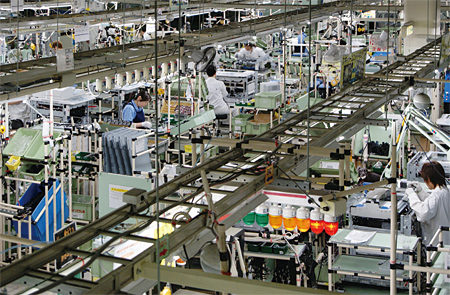 御殿場事業所の特色は、生産現場におけるムリ・ムラ・ムダが徹底して排除されていることにある。生産は「固定・変動」の方式を採用。つまり、ユニット製品と本体製品を可能な限り固定・共通化してコスト削減を図る一方で、変動の領域ではユーザーニーズをできるだけ取り入れているのだ。