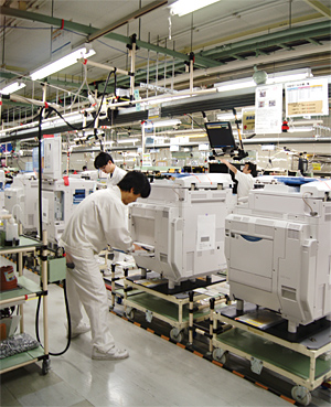 リコー御殿場事業所(静岡県御殿場市)は、1985年の設立当初、アナログのモノクロ複写機を生産していた。現在は、デジタルフルカラー複合機(MFP)などを生産し、「新しい製品を御殿場で立ち上げて海外生産拠点へ展開している」(佐竹宏・御殿場事業所長)という。最先端製品の一大生産拠点である御殿場事業所で展開されているカイゼン活動の実際を、2010年6月18日に取材した。