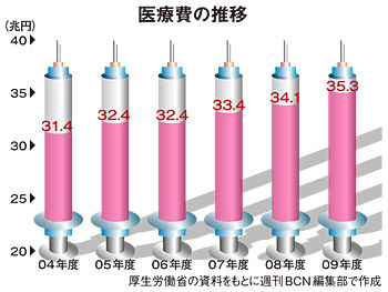 日本の医療費が35兆円を超えた。2001年に30兆円の大台に乗り、07年の33.4兆円から毎年ほぼ1兆円ずつ増え続け、09年は35.3兆円に到達。7年連続で過去最高を更新した。何も手を打たなければ、高齢化の進展などによってさらに増え続けることが懸念されている。医療費抑制で注目を集めるのがITシステムによる業務効率化だが、病院経営の厳しさやITベンダー側の事情が複雑に絡み合い、一足飛びに改善できないのが実情だ。