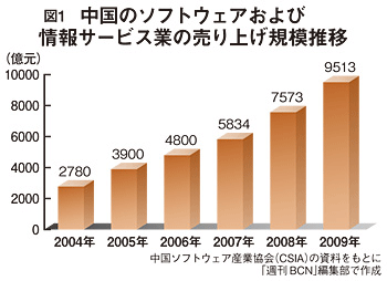 日本の情報サービス産業の市場規模は、同業者間取引を除いた真水で12兆円規模と見られている。中国は多層的な下請け構造がさほど形成されておらず、かつGDP規模で日本を追い抜く勢いであることから、「日中の情報サービス業の規模感は、大差ないレベルに達しつつある」(日本の大手SIer幹部)との見方が有力だ。また、中国は09年8月頃から金融危機による成長鈍化が止まり、いち早く回復基調を取り戻した。中国に進出する日系SIer幹部は、「今後の伸びに期待大」と、成長を続ける巨大IT市場に熱い視線を送る。