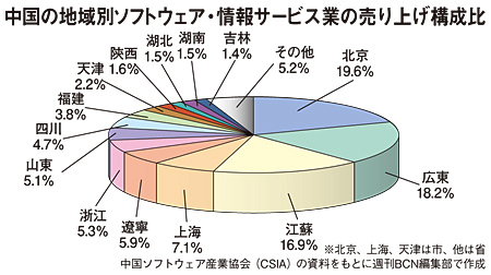 さらに西部地域の経済発展も重要な要素である。中国政府は沿岸部との経済格差を解消するため、西部地域への投資を加速。西部再開発の追い風も相まって「ビジネスチャンスは大きい」(北京ソラン計算機西安開発センターの劉誠総経理)と、事業拡大に向けたアクセルを踏む。(安藤章司)