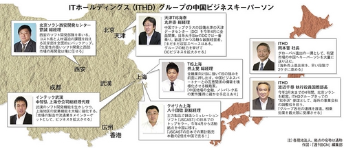 最前線で業種攻勢をかける事業会社を後方支援するのが、中国トップクラスの設備水準を誇る天津DCと、内陸部の西安・武漢のソフト開発拠点。DCを活用したアウトソーシングや大規模開発に即応する。ITHDの岡本晋社長は「早い段階で海外売上高比率を2ケタ%に」と号令をかける。業種戦略や中国地場のビジネスパートナーとの連携、合弁事業などの取り組みを加速させ、グループの中国ビジネスを拡大期へと導こうとしている。(安藤章司)