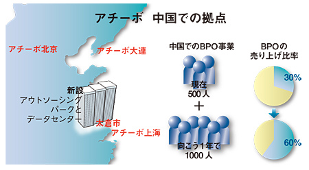 そのために、アウトソーシングパークとDCの設立と同時に、中国でのBPO事業の人員体制を強化する。向こう1年で約1000人を新たに採用し、人員数を現在の500人から1500人体制へと大幅に増やす方針だ。これによって、中国事業全体でBPOの売上比率を現在の25%から60%へ引き上げることを狙う。日本での営業窓口となっているアチーボ情報サービスの李晨社長は、「成功するかどうかは売り方次第だが、中国は最も重要な市場になるに違いない」と断言する。