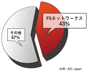 IDC Japanによれば、国内L4-7スイッチ市場で、F5ネットワークスは40%以上のシェアを維持している(09年のメーカー別シェア=金額ベースで43%)。現段階でも、圧倒的なシェアを誇っている。
