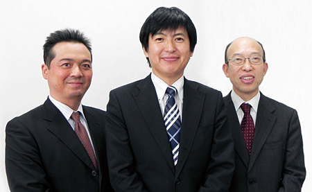 日立情報システムズの副島忠夫・自治体情報サービス事業部東日本自治体システム本部長(中央)と同社の増田勝二・公共マーケティング部担当部長(右)、高木正幸・第一営業部第一課長