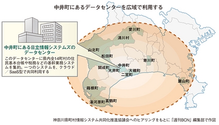 神奈川県町村情報システム共同化推進協議会は、住民基本台帳や税務システム、国民健康保険などの基幹系業務システムの共同利用化を決めた。データセンター(DC)をベースにクラウド/SaaS方式で共同利用サービスを提供するのは、大手SIerの日立情報システムズ。神奈川県内の全14町村が参加するもので、全県の町村が基幹系業務システムをクラウド/SaaS方式へ移行するのは、今回が初めてのケースとなる。自治体クラウドの先駆的事例である。
