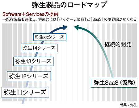 店頭の業務ソフト市場でトップを走る弥生がSaaS提供に乗り出す意味は大きい。将来的には、「パッケージかクラウドかで区別することがなくなっていると思う。最終的には何らかの形で融合していくだろう」(岡本社長)とみる。
