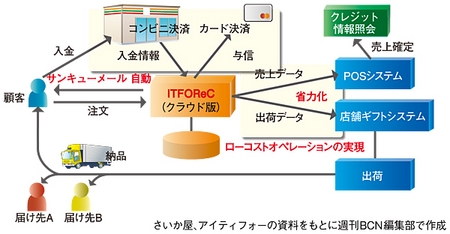 納入形態は、システムを客先に設置するオンプレミス型ではなく、クラウド型とした。ITFOReCクラウド版サービスを採用した百貨店は、今回のさいか屋が初めて。客先設置に伴う作業を削減すると同時に、月額料金方式なので初期投資を抑えることができる。2010年11月にネット通販システムを予定通り刷新。その直後に迎えた“お歳暮商戦”では前年同期比で2倍余りを売り上げるなど、さいか屋の経営基盤の強化に貢献している。(安藤章司)