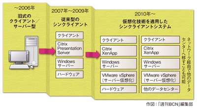 NTTコムウェアのシンクライアントアーキテクチャ構造の推移
