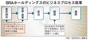 SRAは、強い営業組織をもつというより、先進的な技術力が強みのIT企業。だが、今の市場環境を感じ取り、鹿島社長は営業プロセス改革に乗り出した。SRAは過去、不採算プロジェクトを複数発生させた時、それを撲滅させるために、プロジェクト管理ツールを導入して開発案件を徹底管理する仕組みをつくり上げた。それ以降、不採算案件を生み出さない強い開発体制を築いている。いわば、開発プロセス改革だ。今度はその仕組みを、営業・提案活用にも移植しようとしている。
