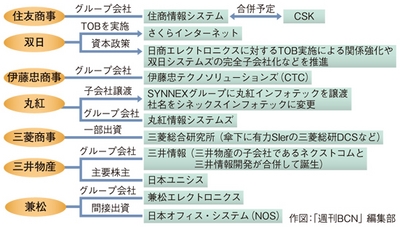 商社系大資本の情報サービス分野への関与が強まっている。住商情報システムが独立系大手CSKを合併すると発表し、双日は有力ホスティングベンダーであるさくらインターネットへのTOBを実施。また、兼松は兼松エレクトロニクスや日本オフィス・システム(NOS)と連携を進めるなど、情報サービス分野における商社の動きが活発化。商社系大資本はクラウドやグローバルITサービス、スマートコミュニティに強い関心を示す。(安藤章司)