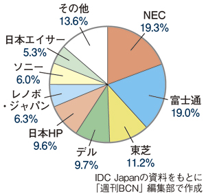 2010年の国内パソコン市場の ベンダーシェア |